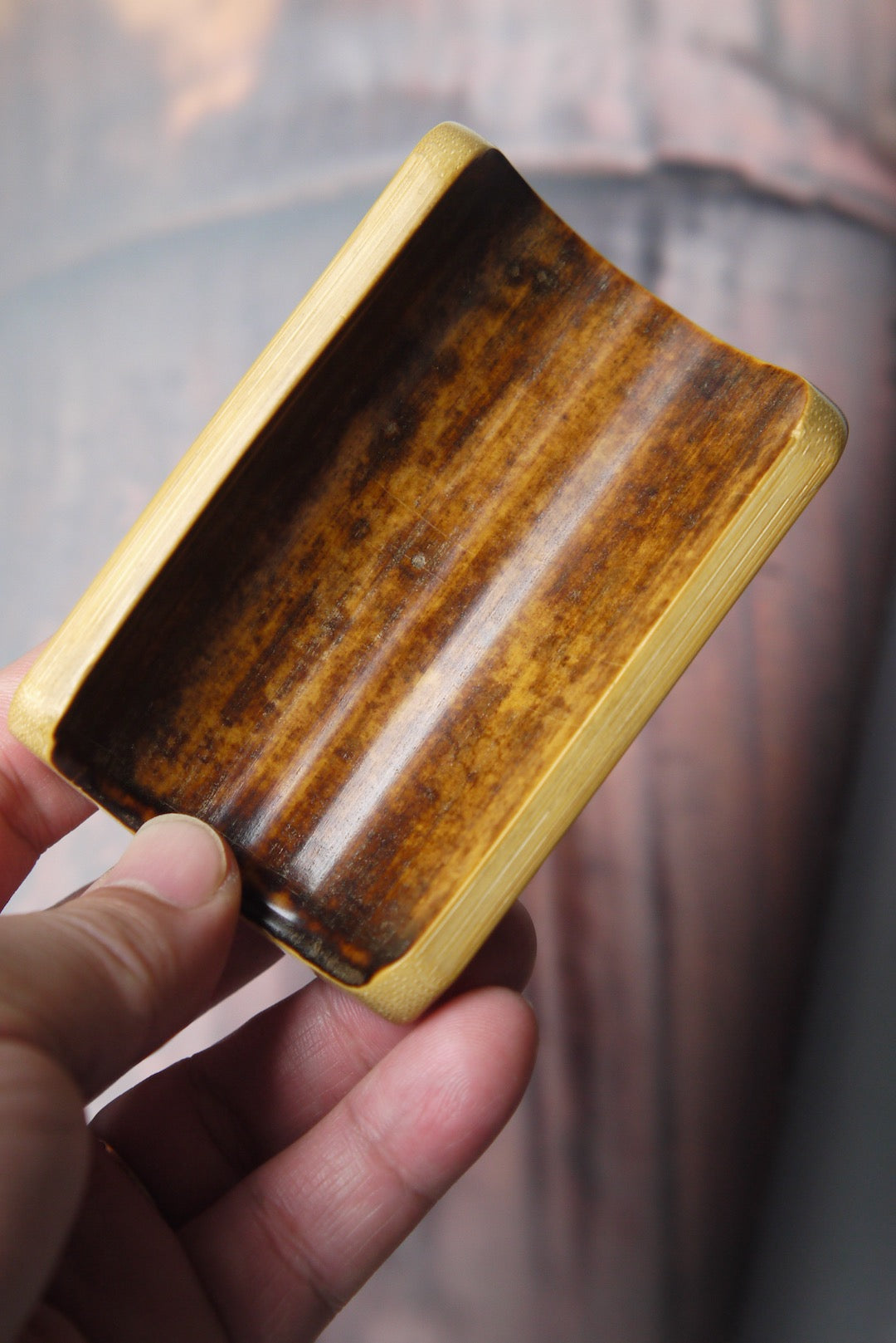 However, fate intervened. I noticed a segment of the bamboo slowly darkening, like an invitation to unveil its secrets. Intrigued, I decided to dedicate time to it. As I polished the surface, an astonishing symphony of brown and yellow patterns emerged, turning my initial indifference into awe. The bamboo's texture, once overlooked, now exuded a warm and inviting feel. Day by day, as I used and admired it, the bamboo's hue transformed into a deep, rich red—a testament to its maturity. The intricate patterns on the bamboo began to reveal themselves, akin to the delicate patterns of porcelain glaze.